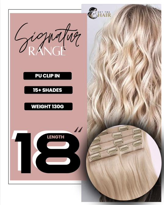 Our Signature Range 18″ Seamless Clip-Ins are crafted from 100% Remy human hair with a PU (polyurethane) seamless base for ultimate comfort and an invisible finish.